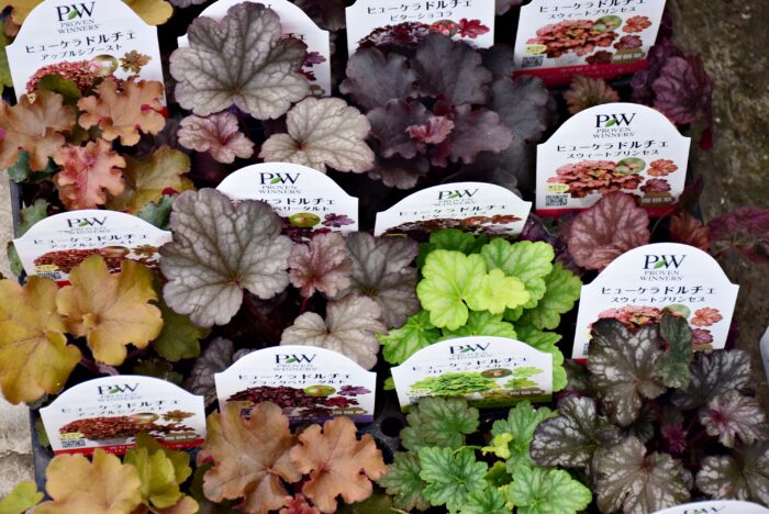 寄せ植えの名わき役カラーリーフがいろいろと入荷しています。