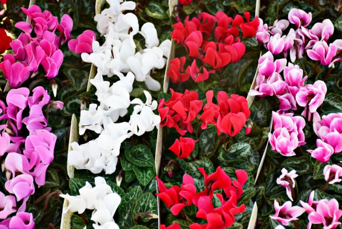 「ベラノ種」由来の青色シクラメンです。一度見たら忘れられない印象的な存在感です。