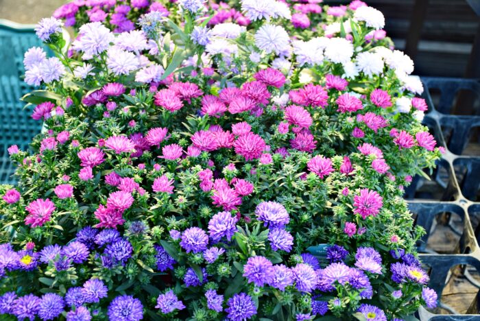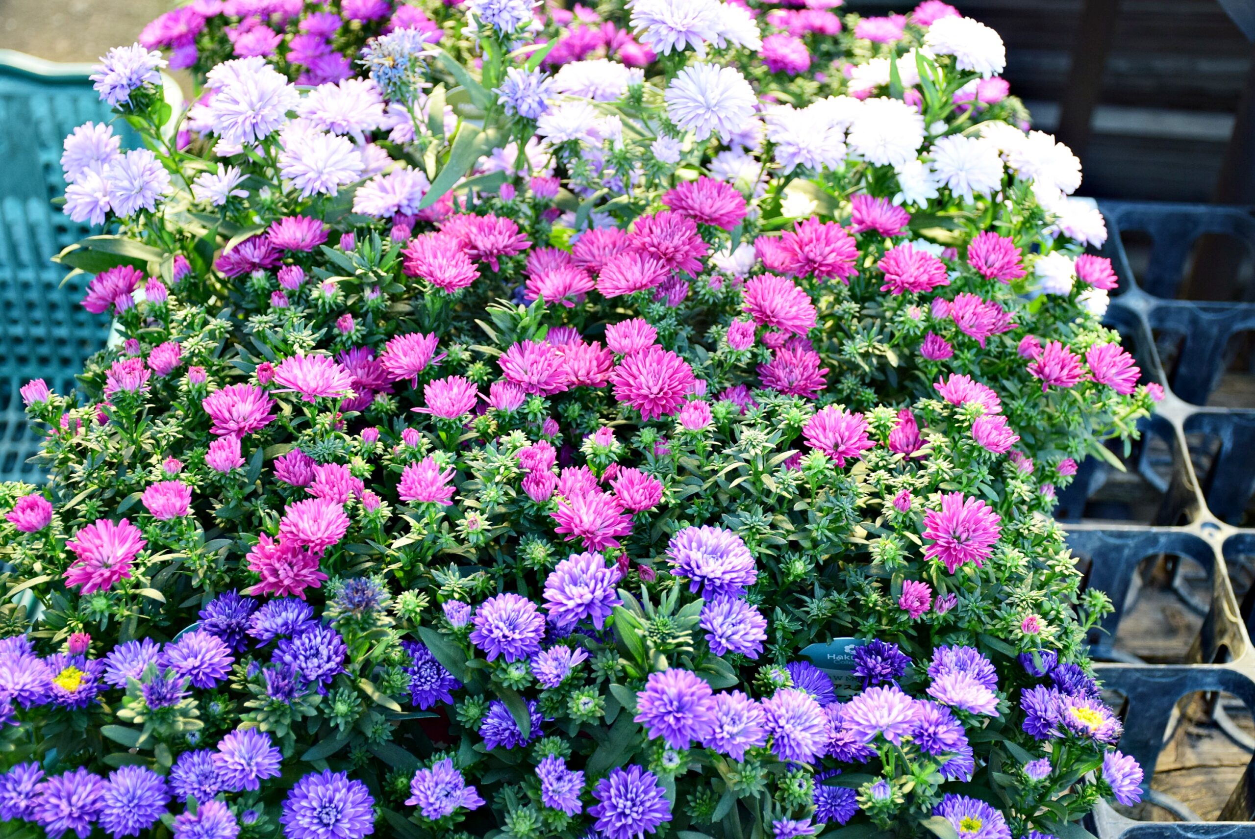 ドーム状に花が咲く八重咲きの宿根アスターです。よく枝分かれし、コンパクトな株にたくさんの花を咲かせます。花もちがよく、次から次へと花が上がるので切り花としてもおすすめです。