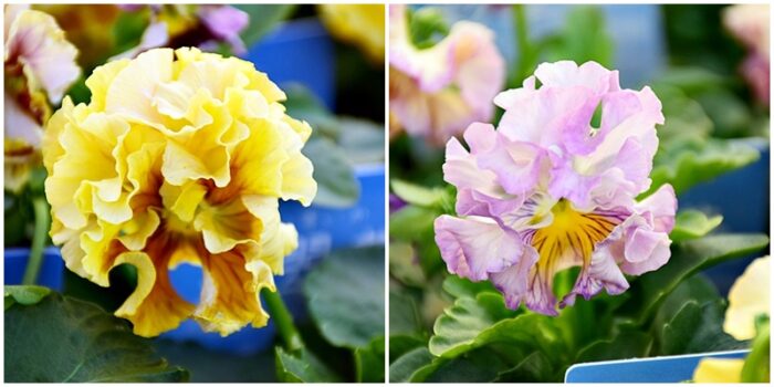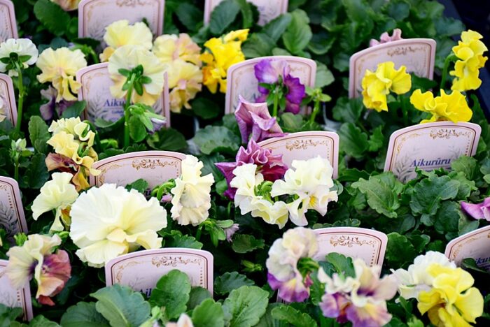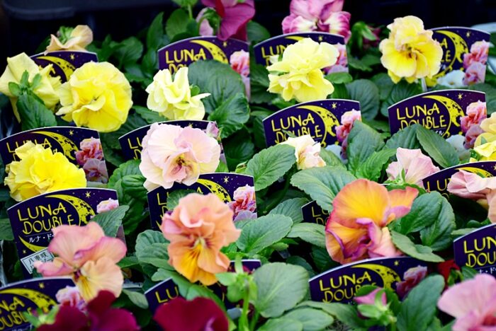 「ルナ」は育成者の名前の一部から、「ドゥーブル」はフランス語でダブルの意から生まれた八重咲パンジーです。