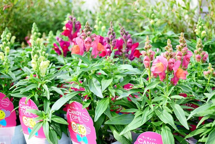 茎が硬く折れにくいので花壇の後方や寄せ植えにおすすめ! どんどん分枝して花が次々と咲きます。ビビッドな色彩も特徴。