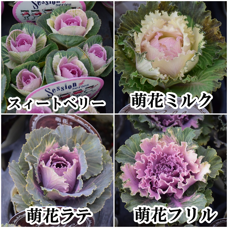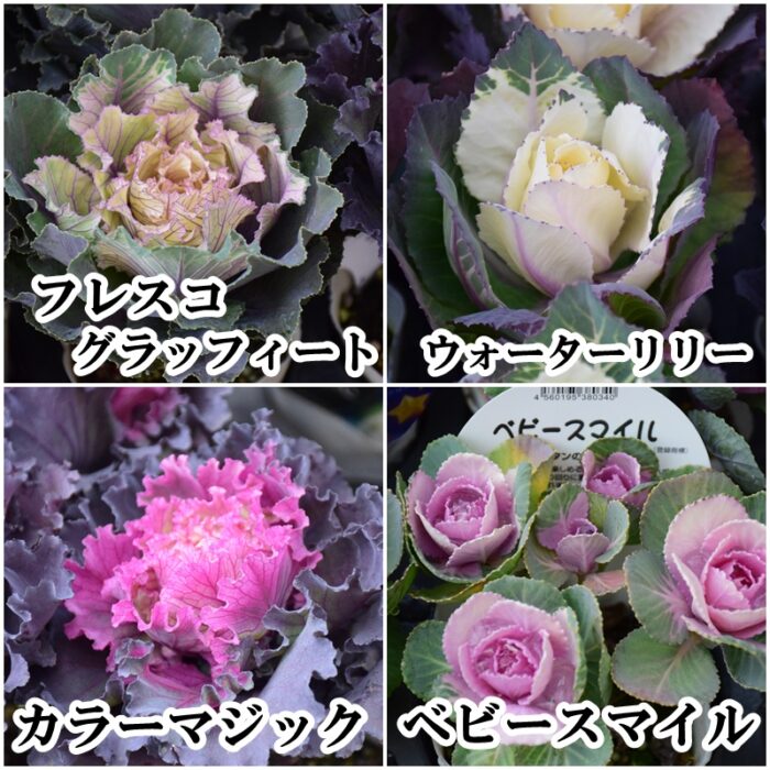 葉ボタンは寄せ植えやハンギングバスケットに重宝するシリーズがたくさん入荷しています。