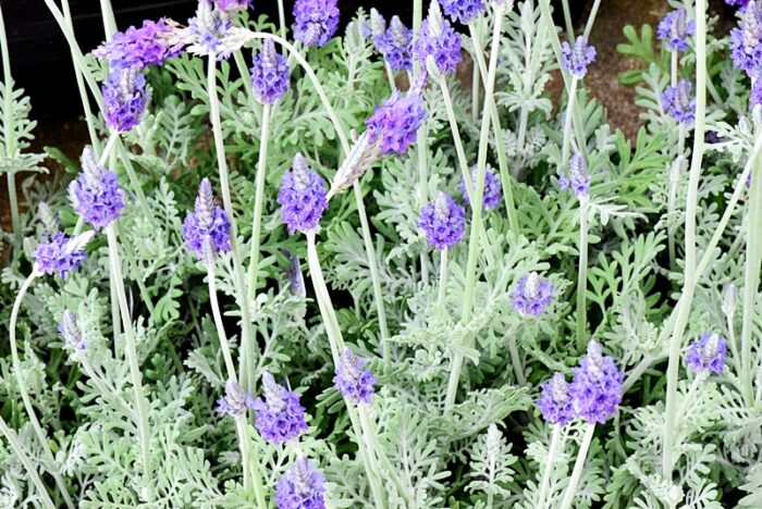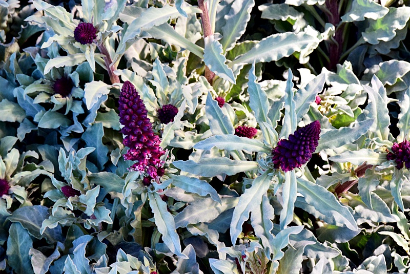 シルバーリーフの葉と穂状のワインカラーの花が美しい耐寒性多年草です。 花と葉の色合いが美しく、花壇や庭で美しく引き立ちます。