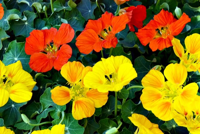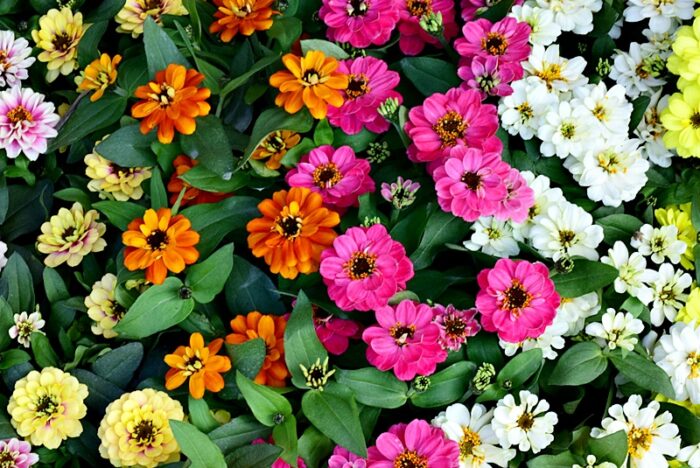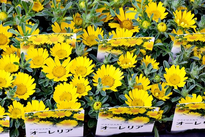 真夏でも休まず花を咲かせます。黄色やオレンジの鮮やかな花弁と、中心の濃い茶色や黒(筒状花)とのコントラストが美しい。耐暑性・耐寒性が非常に強く、初心者でも育てやすい非常に丈夫な植物です。