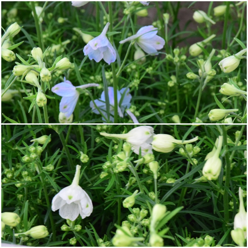 咲き始め、満開、咲き終わりで、花色が徐々に変わっていきます。 咲き始めはクリームホワイトで、徐々に青に染まり、満開時には柔らかなラベンダーブルーになります。 テマリ咲きの品種で、小さな花がぎゅっと集まって咲く花姿は、実際の花房の大きさよりもボリューム感があります。